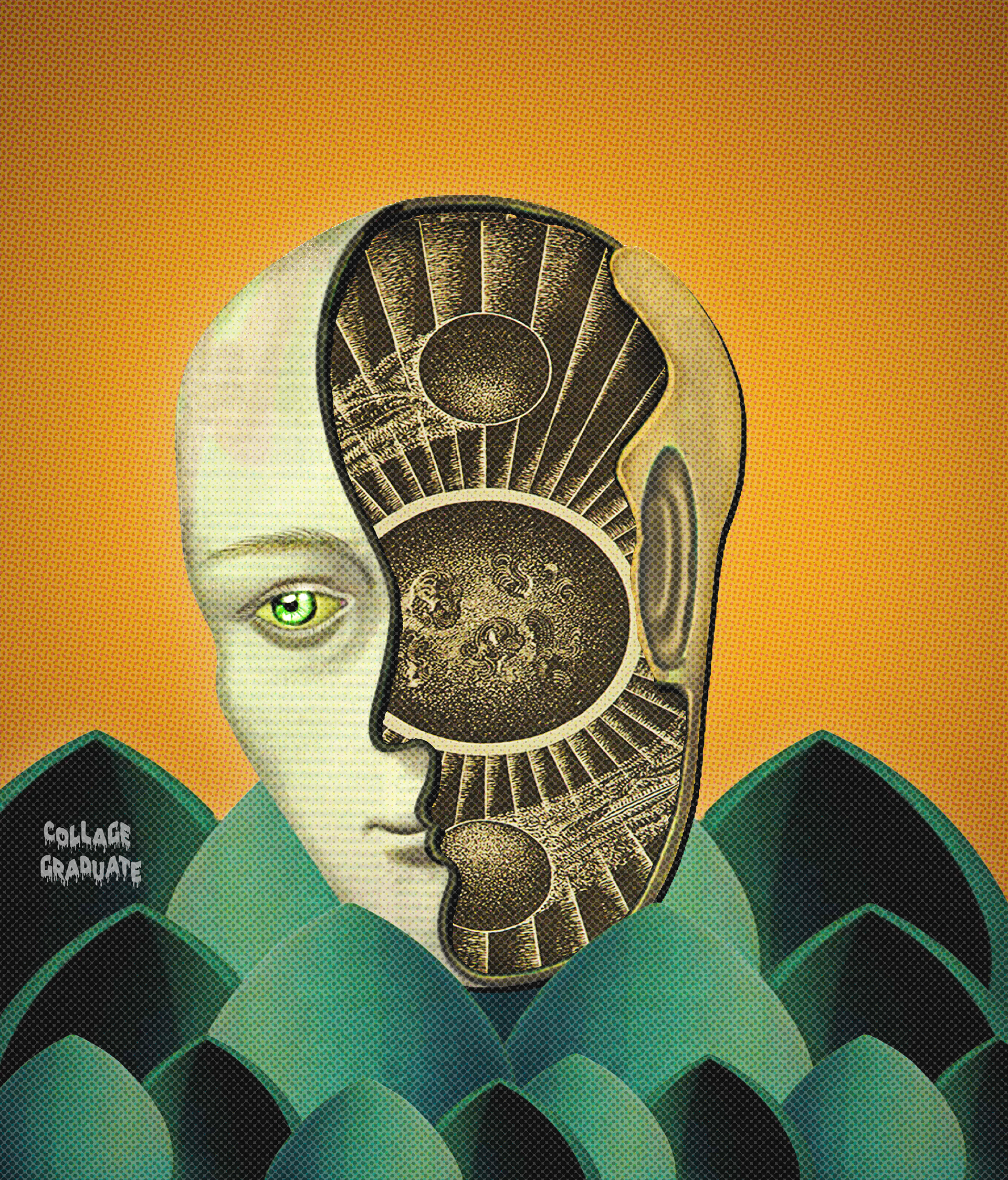 Using forgotten images found on the web, I give them a new story to tell. my Collages are kitschy and surreal, funky and funny. I want you to look at my work and create your own story.
